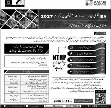 The National Talent Hunt Program 2027 is announced by Institute of Business Administration Karachi for talented students across Karachi and Pakistan. This NTHP Orientation Program offers academic training, mentorship, and financial support to deserving candidates. Eligible students can apply online to secure a chance for quality education and professional development through this latest opportunity.